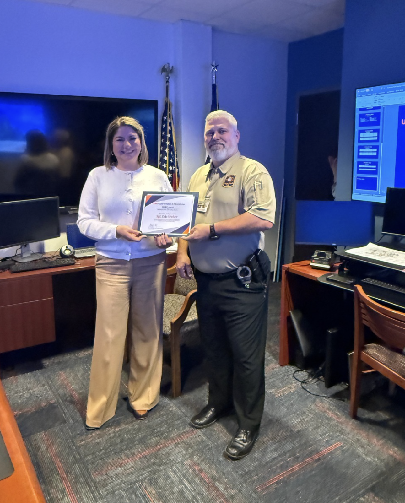 Officer Lauren Duff receiving the UT System Life Saving Award on September 10